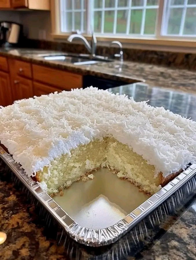 Spread whipped cream evenly over the cooled cake.Sprinkle with shredded coconut on top.Chill for at least 1 hour before serving.